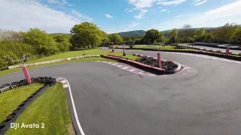 Het circuit presenteerde enkele uitdagingen, zoals scherpe haarspeldbochten en een tunnel waar de karts doorheen raceten. Als je geen hoge G-manoeuvres uitvoert zoals hierboven te zien is, kun je de moeilijkheden met de Avata 1 vermijden. Over het algemeen presteerde de DJI Avata 1 beter dan verwacht.